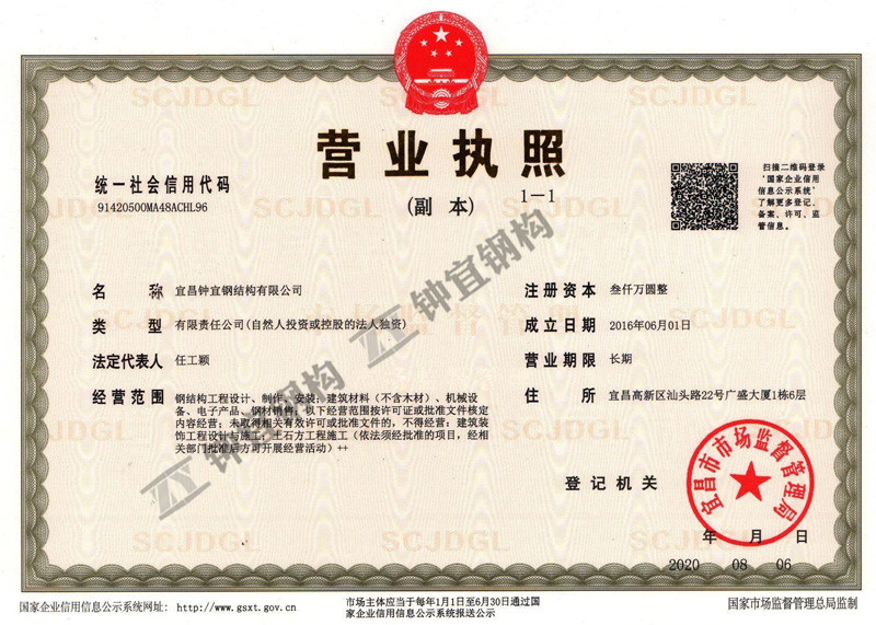 发布日期:2021-01-11 来源:宜昌钟宜钢结构有限公司 作者:办公室 浏览次数: