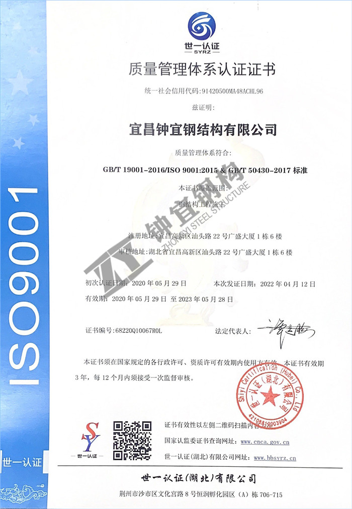 发布日期:2021-01-12 来源:宜昌钟宜钢结构有限公司 作者:办公室 浏览次数: