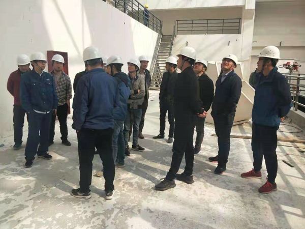 三月十八日,公司领导及各项目部负责人齐聚山东齐河环保垃圾焚烧发电项目部, 观摩学习钢骨架轻质板的施工工艺。上午,齐河项目经理周宜江一边引导大家观看施工流程,一边进行解说。