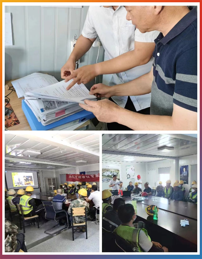 2022年6月20日公司组织安排李军、李筱颖两位领导莅临伊宁项目施工现场第一线,进行组织安全、财务培训检查工作,要求项目部一如既往的高度重视安全质量,加强安全制度的实施及落实,加强对施工队工人的安全管理保证现场文明施工;加强工程建设质量安全管理,切实消除施工现场重大质量和安全隐患,不断提升我司工程质量和安全管理水平;进一步规范财务工作制度,加强各项费用管控,切实提高项目部的财务管理工作。