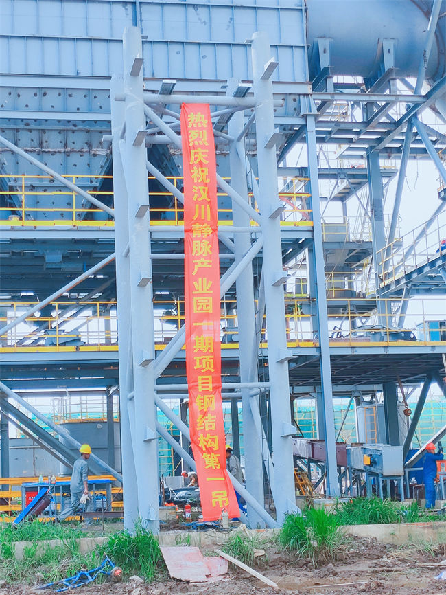 2023年7月24日汉川静脉产业园一期项目主厂房格构柱首吊