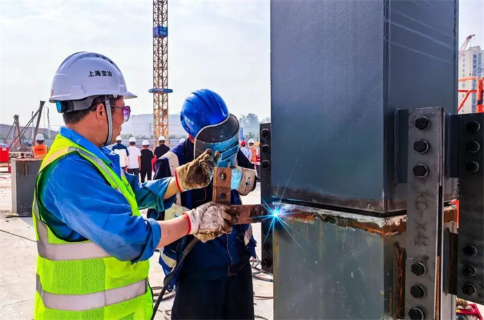 “3月开始施工,4月13日完成桩基施工,5月15日完成基础及钢柱脚施工。”宝冶公司现场负责人介绍,科创中心项目总建筑面积14.04万平方米,钢结构用量达到了2500吨。此次吊装的首节钢柱高14.6米,总重量6.078t,采用Q355B 优质钢材,具有高强度、耐腐蚀等特性,其成功安装为后续钢结构施工提供了稳定的基础,“后续还会有第二根钢桩依次向上安装,与其他钢桩一起,最终形成整个项目的‘主骨架。’”